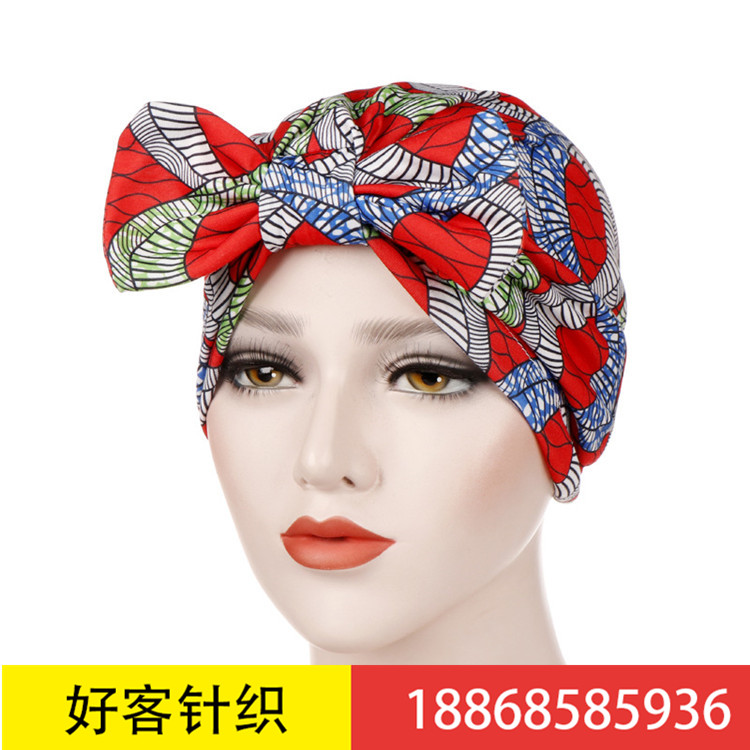 速卖通新款印花可拆卸活动蝴蝶结腰果花穆斯林包头帽印度头巾帽