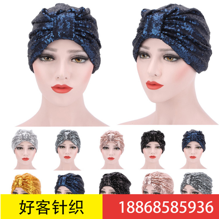 爆款亮片头巾帽_欧美流行包头帽印度帽_街拍潮流包头帽现货