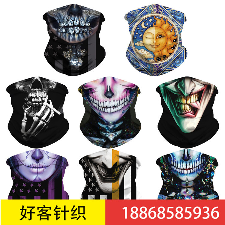 亚马逊热销万圣节小丑印花男女潮范头巾围脖套骑行魔术面罩