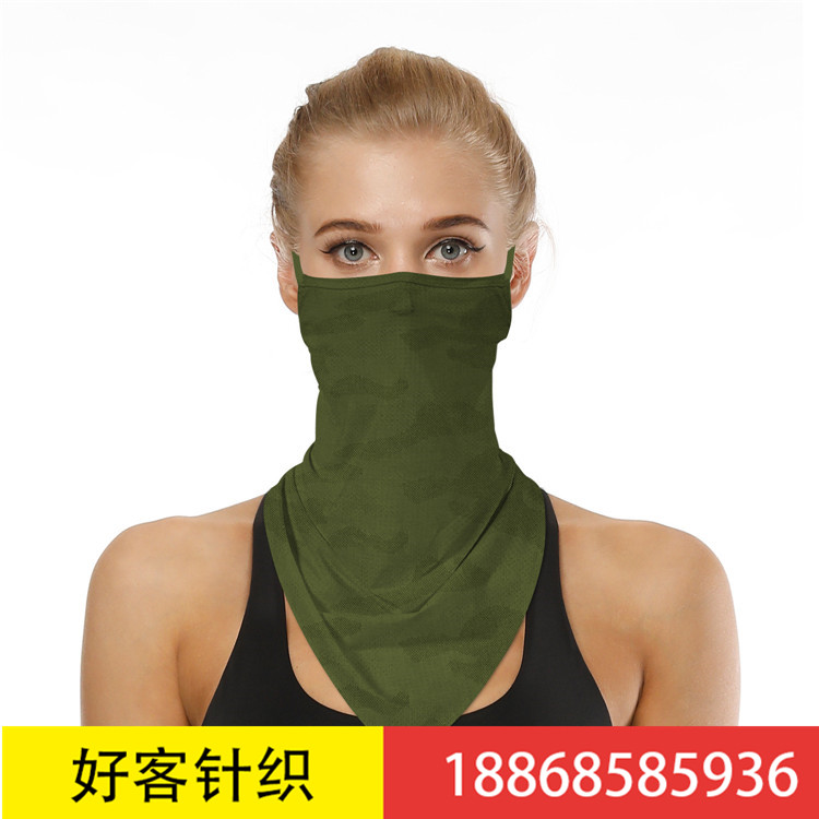 军绿色千鸟格布印花防尘围脖摩托车面罩骑行挂耳罩三角巾