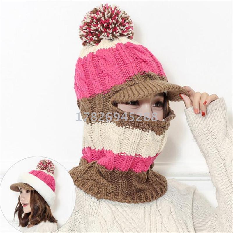 冬天针织套头加绒骑车口罩东北防风寒围脖护耳一体帽子