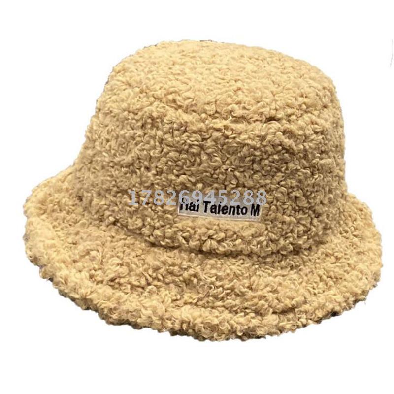 帽子女ins羊羔毛字母刺绣渔夫帽秋冬季保暖毛绒盆帽