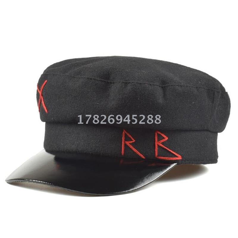 新款欧美经典拼皮毛呢报童帽海军帽保暖鸭舌帽