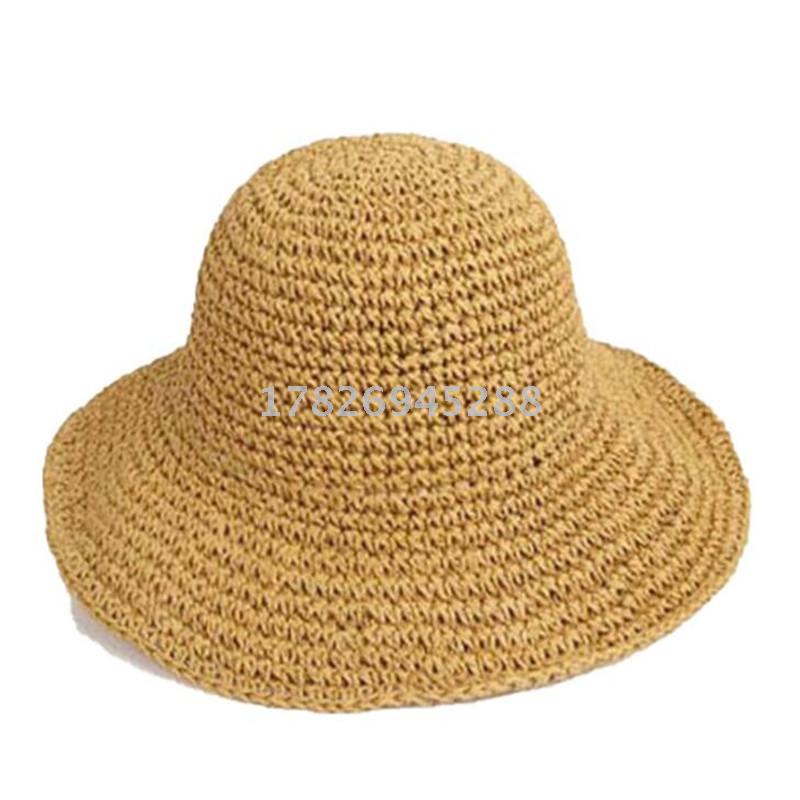 厂家直销韩版手工钩针草帽女士蝴蝶结可折叠防晒大檐沙滩帽女