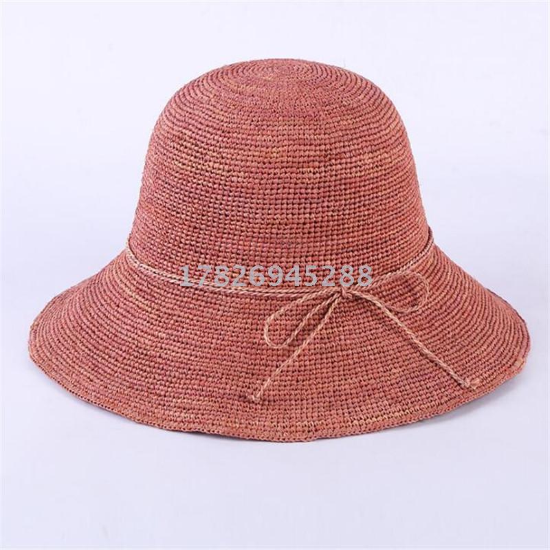可折叠拉菲草手工钩针帽夏季时尚遮阳沙滩帽速卖通