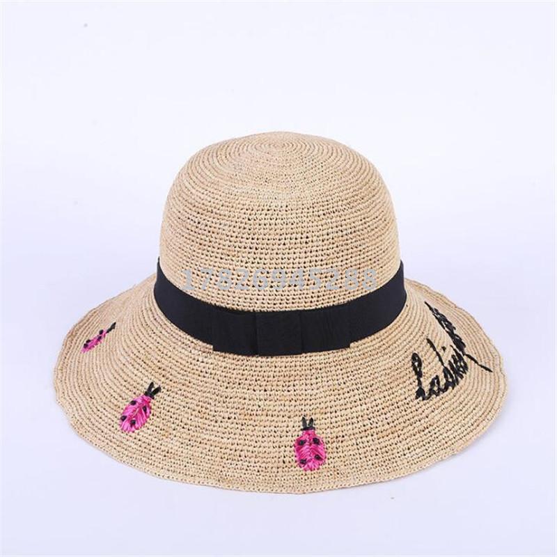 拉菲草手钩大檐帽瓢虫定做女式草帽遮阳帽