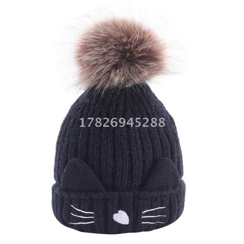 小猫卡通围巾毛线帽针织帽ins爆款批发