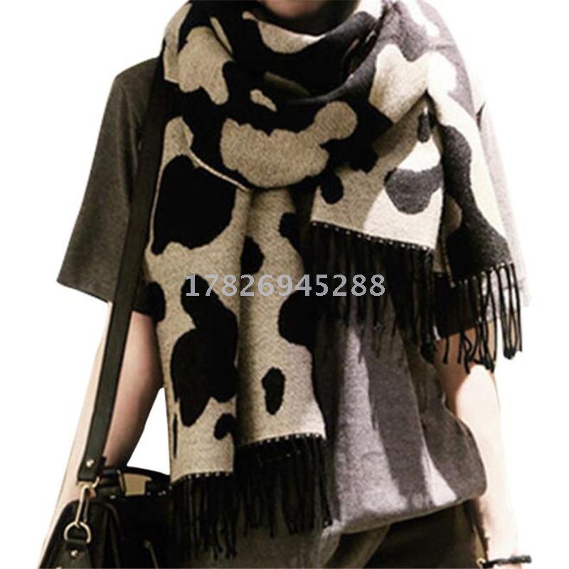 新款奶牛花仿羊绒围巾女披肩毛线两面流苏围脖批发
