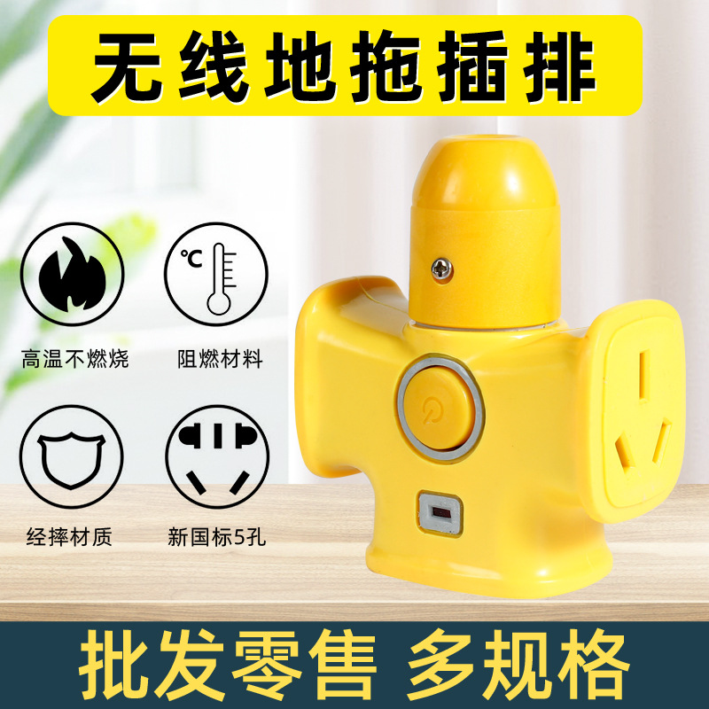 黄色无线地拖插座10孔开关插座地拖十字型带指示灯电源接线插线板