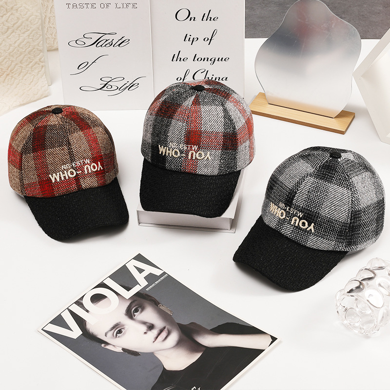 秋冬帽子中老年毛呢帽 冬季户外英格兰格子流行时尚棒球帽鸭舌帽