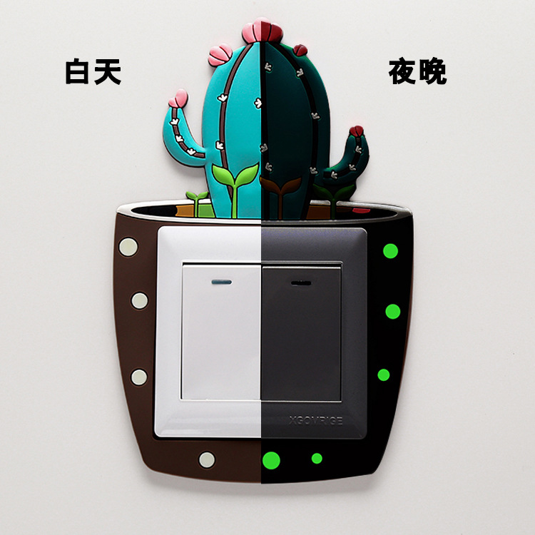 H675 夜光开关贴创意卡通仙人掌开关套 开关装饰贴墙贴插座保护套