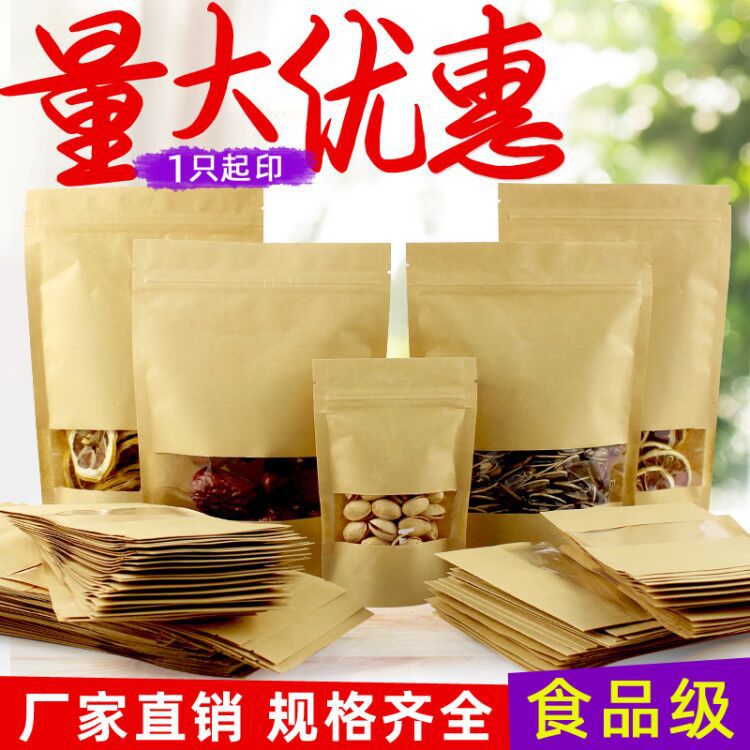 开窗牛皮纸袋茶叶坚果包装袋牛皮纸自立自封袋干果类密封袋食品袋