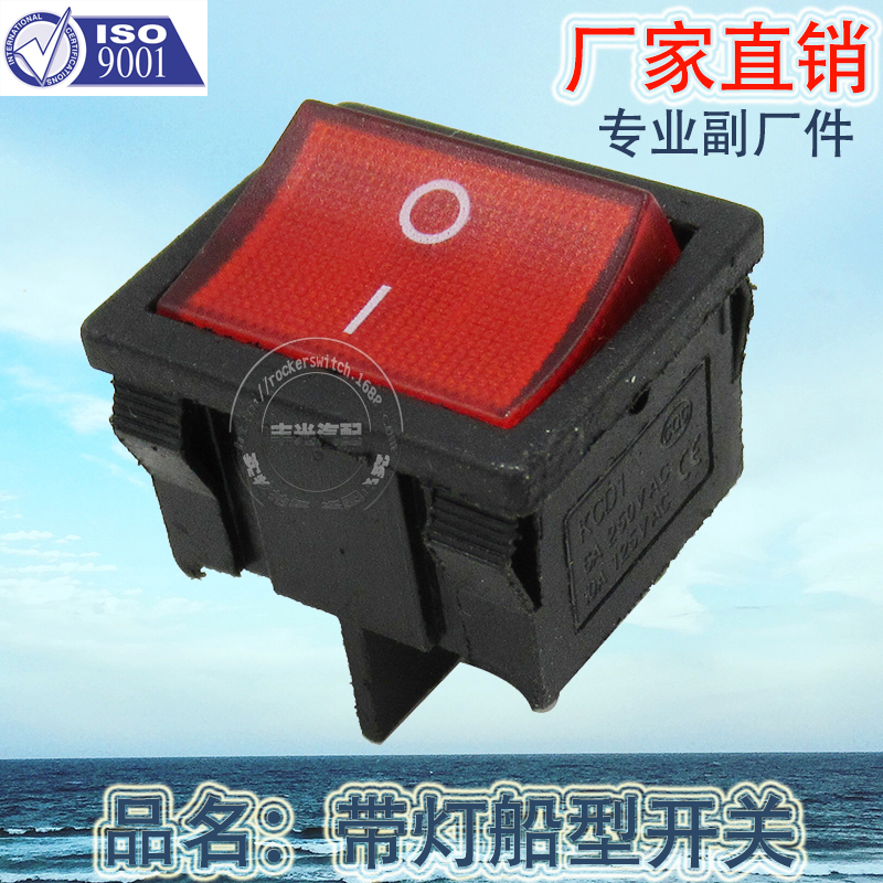 厂家直销 4脚ON-OFF带灯开关船型开关KCD1-6-201N小功率电源开关