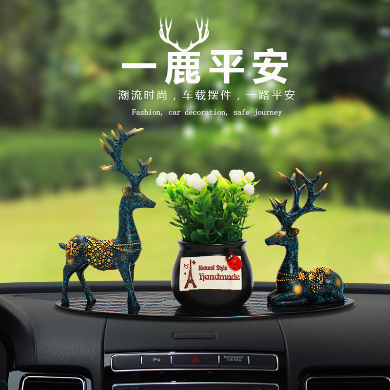 高档防滑垫汽车摆件一路平安鹿创意可爱车内饰品家居摆件一件代发