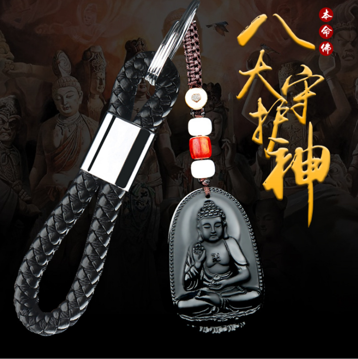 黑曜石十二生肖本命佛守护神汽车钥匙扣创意挂件平安男女包包挂饰