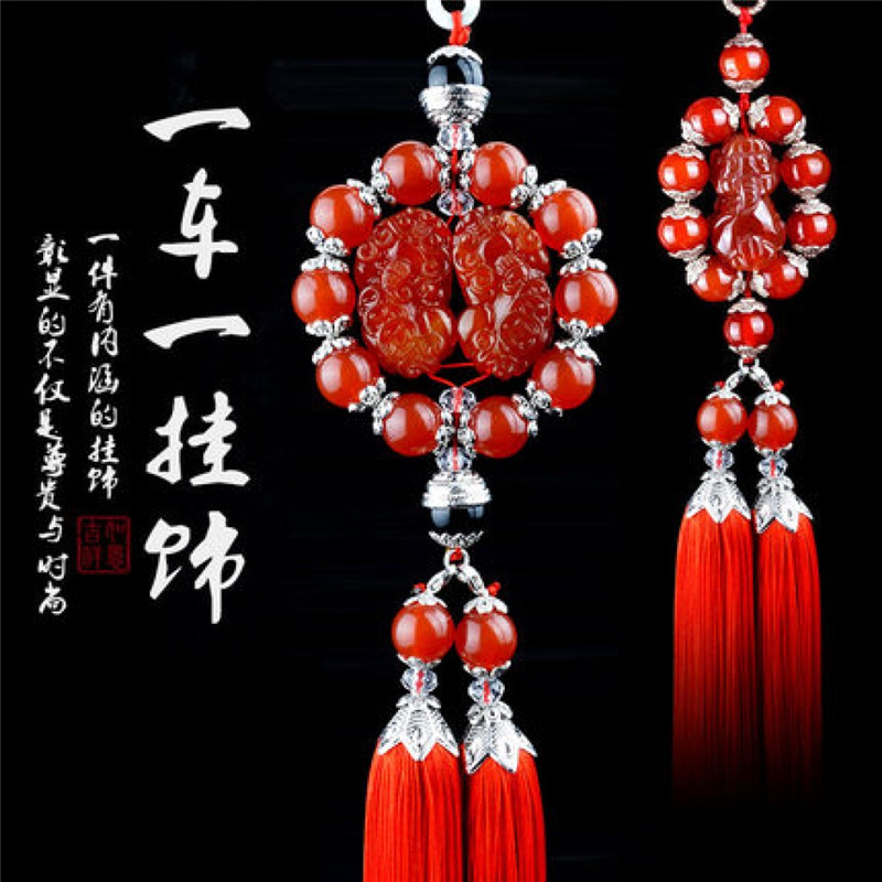 汽车挂件 玛瑙双貔貅汽车挂饰 平安符汽车内饰