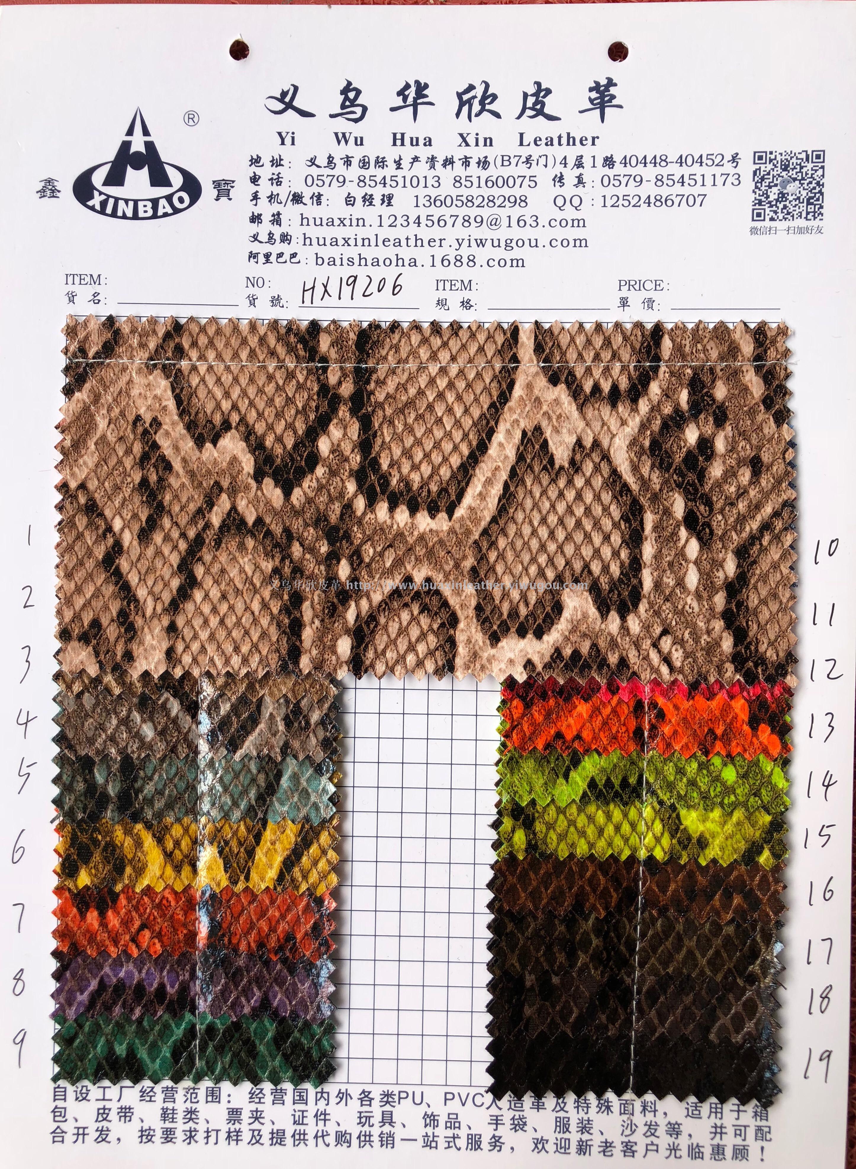 【华欣皮革】蛇纹HX19206 人造革 箱包、皮带、鞋革