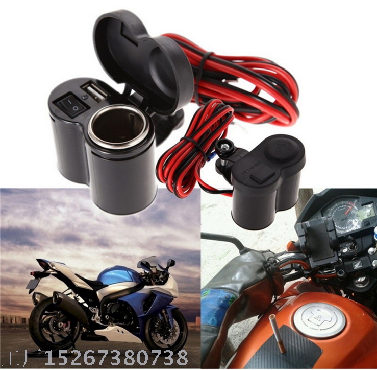 摩托车防水点烟器12V24V点烟插座USB手机充电器一拖二