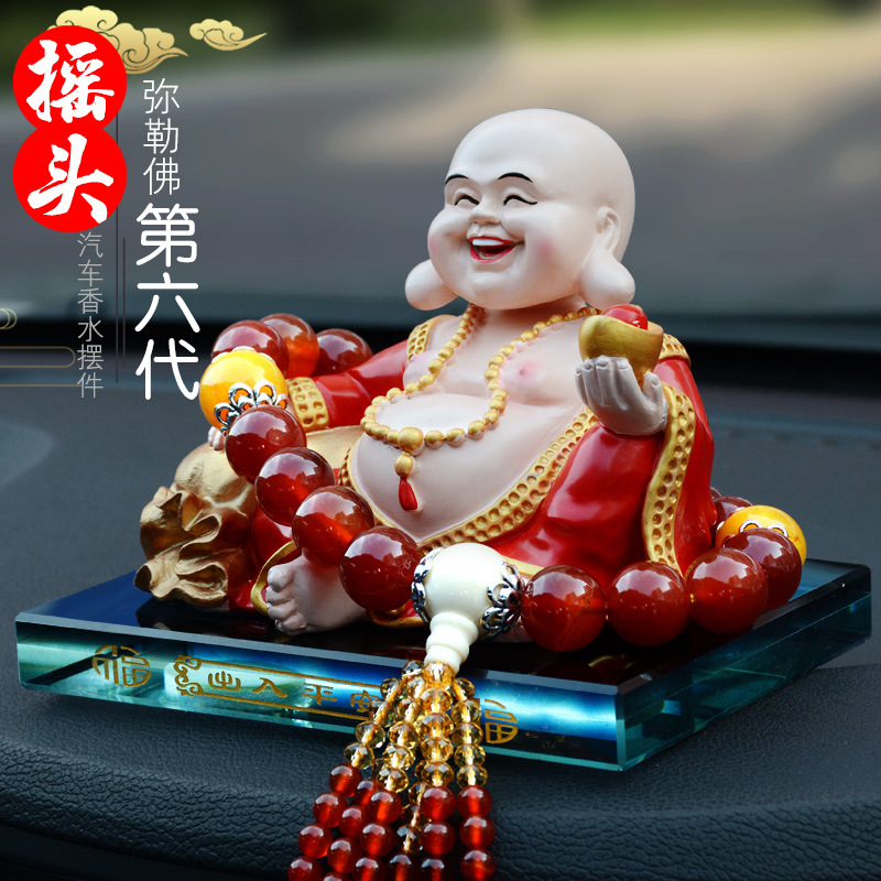 汽车摆件摇头弥勒佛香水座高档创意保平安时尚车内装饰品汽车用品