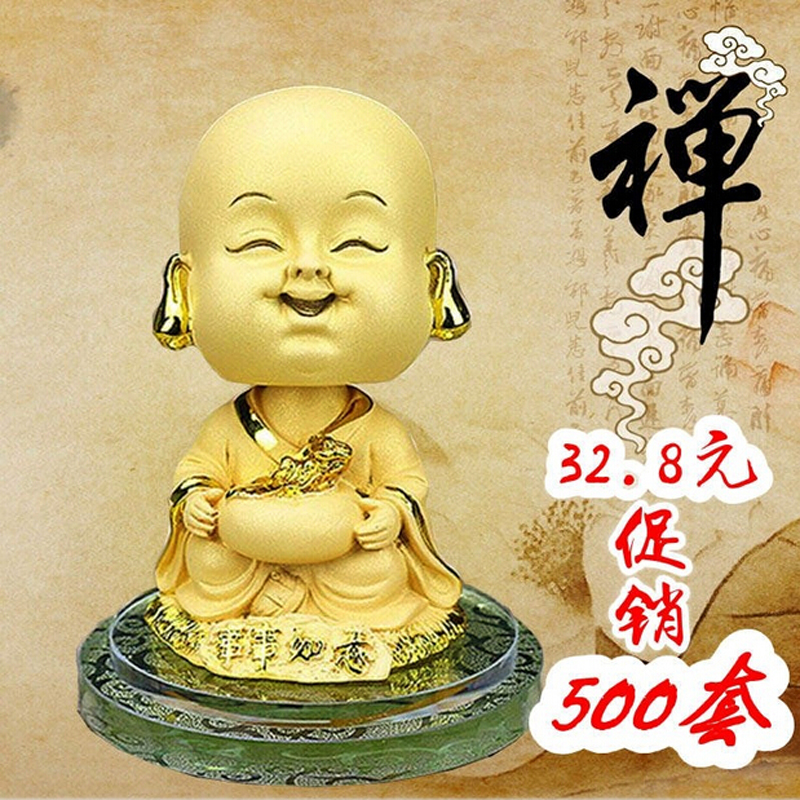 汽车摆件创意高档小和尚摇头可爱公仔绒沙金保平安