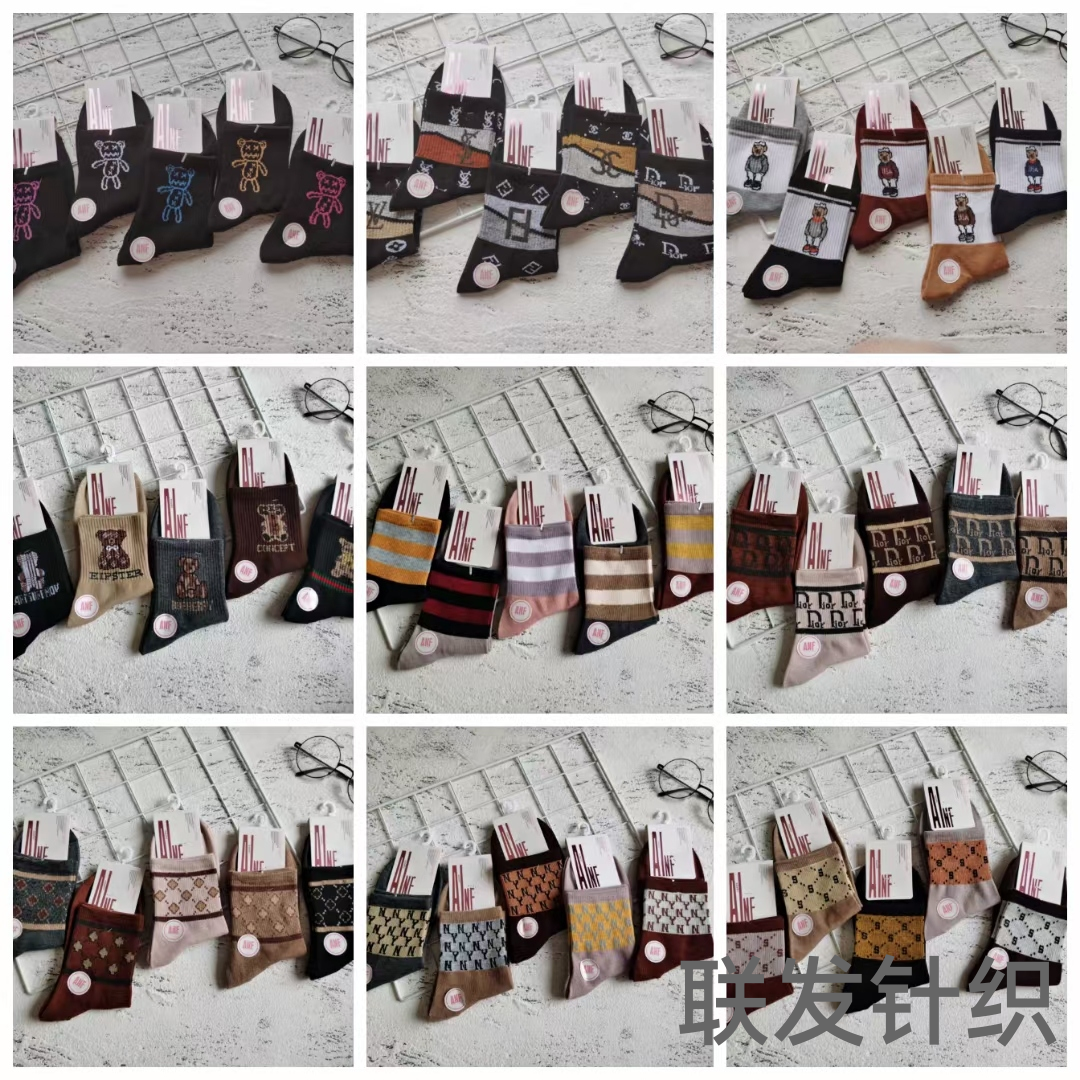 女士高橡筋彩棉袜 中筒学生运动中筒棉袜 时尚休闲袜子