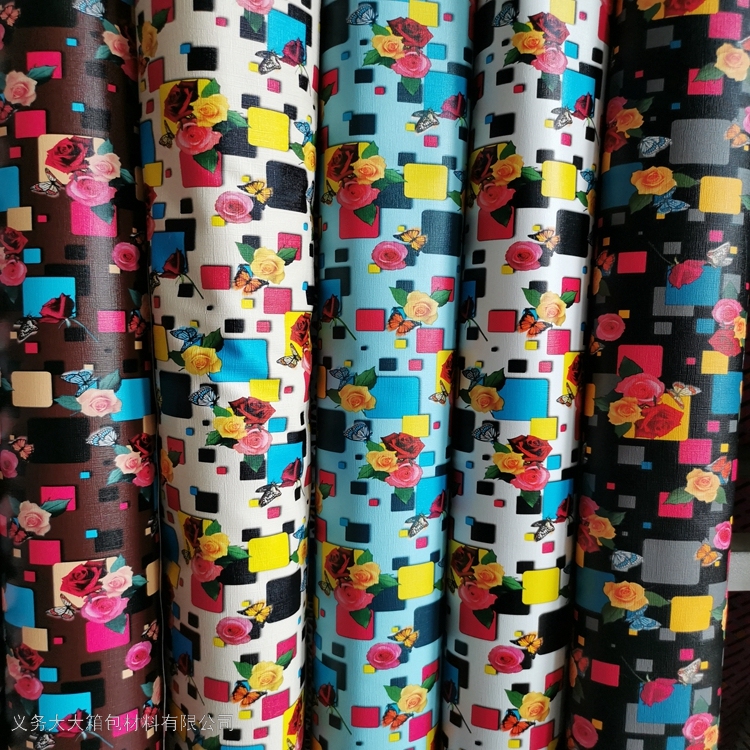 转移印花人造革 厂家直销 大量现货 箱包化妆包拉杆箱等外包装革