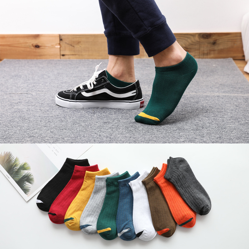 袜子男秋季男士船袜低帮提耳短袜网眼运动袜潮流纯色地摊男士袜子