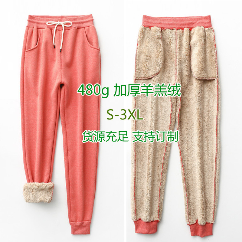 羊羔绒运动裤冬季女大码加绒卫裤秋冬款宽松加厚显瘦学生保暖裤子