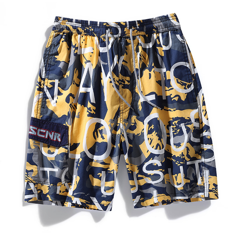 跨境短裤夏季男沙滩裤休闲五分大裤衩乱花可下水宽松男士速干裤