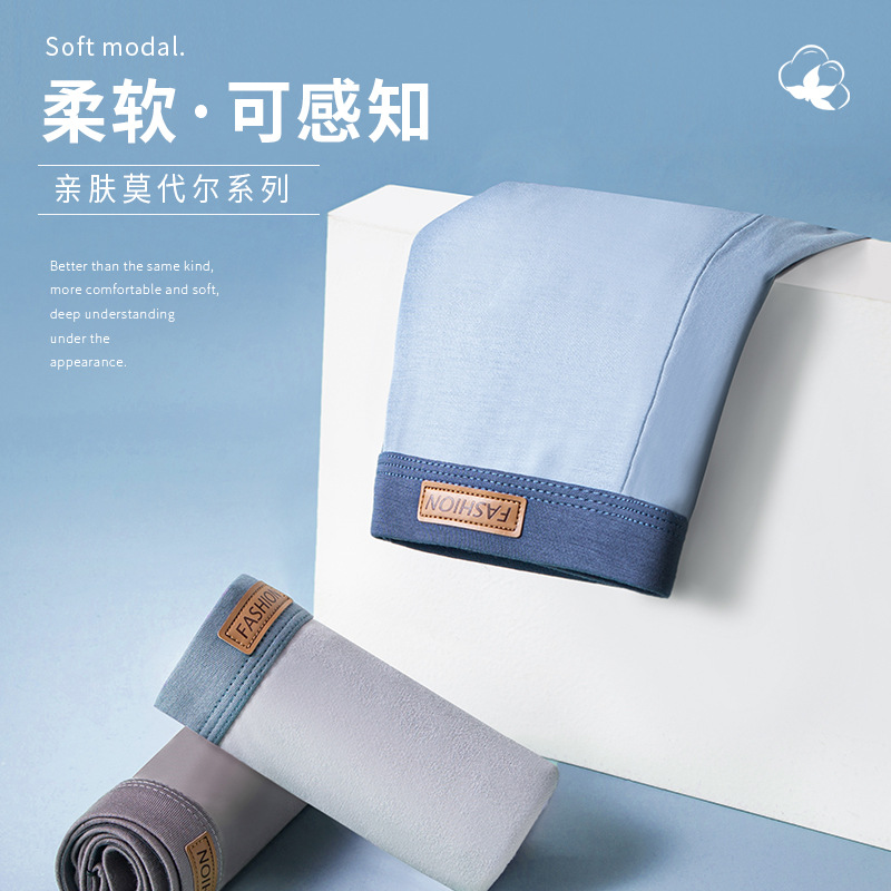 莫代尔中腰男士内裤拼色腰带平角裤u凸设计四角裤男三条盒装