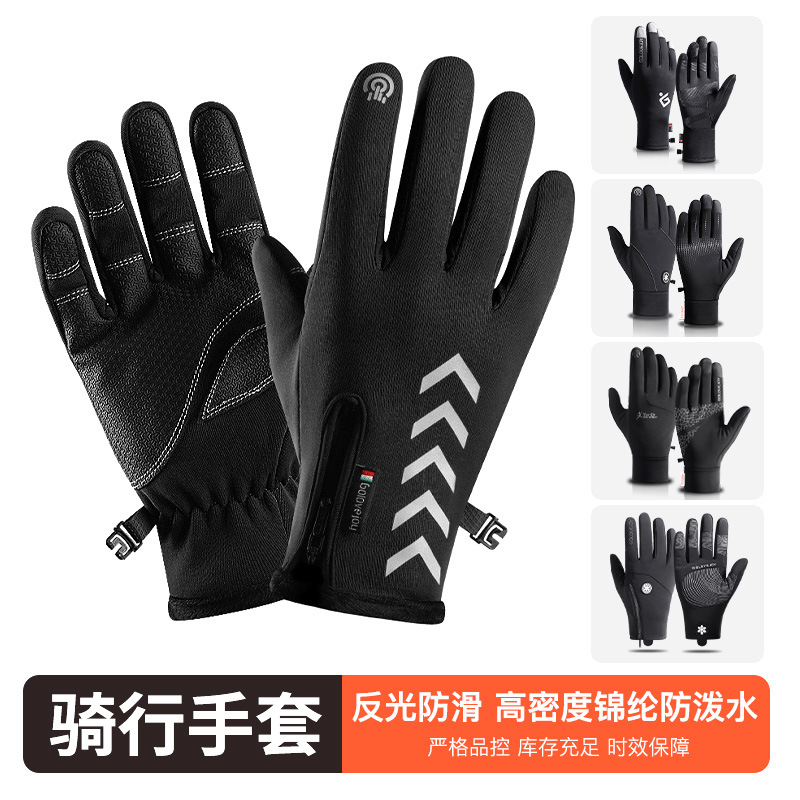 冬季骑行手套男士户外滑雪运动防水拉链触屏防风加厚抓绒保暖手套