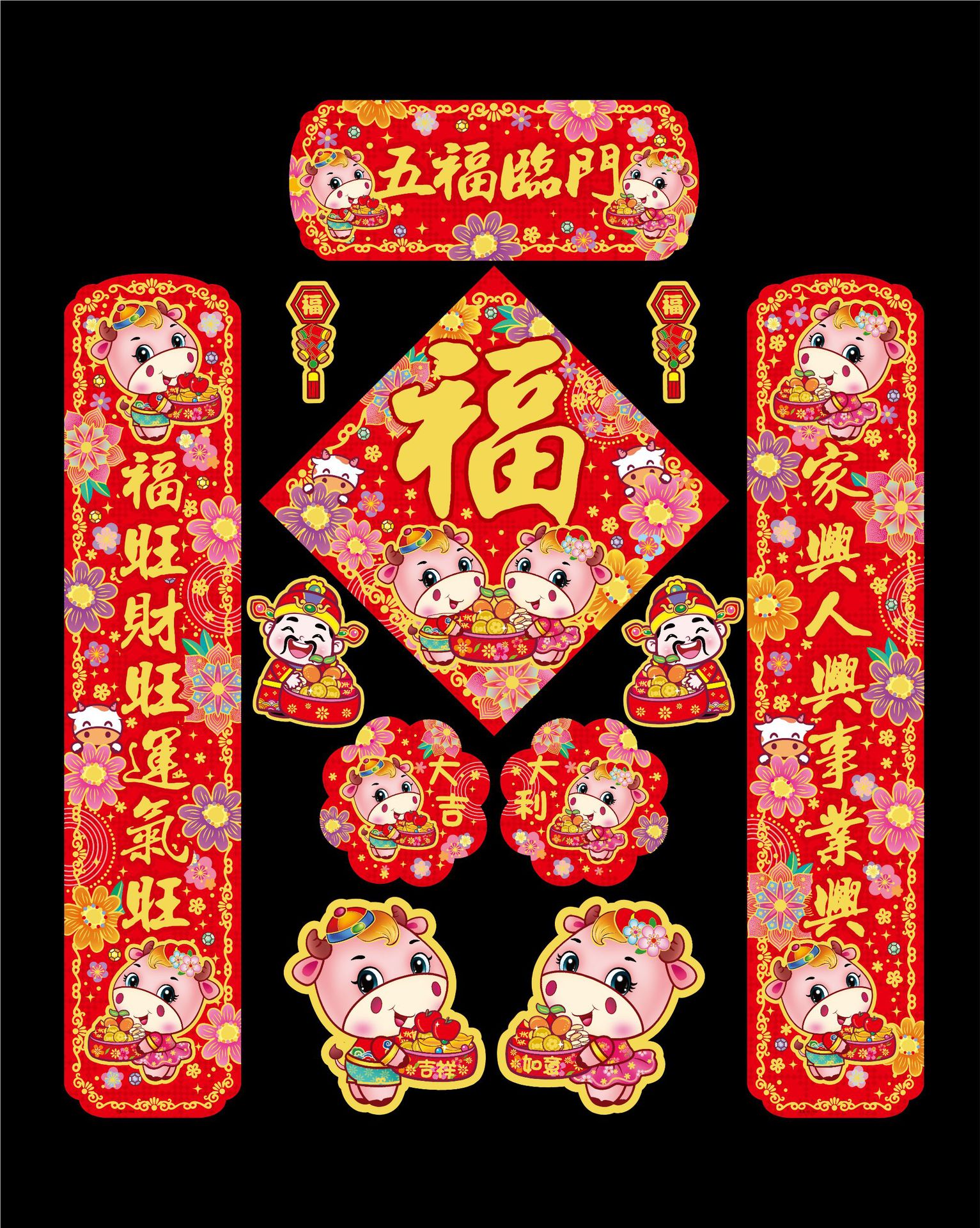 牛年多款可印logo对联大礼包 一件代发福字窗花红包珲春联大礼包