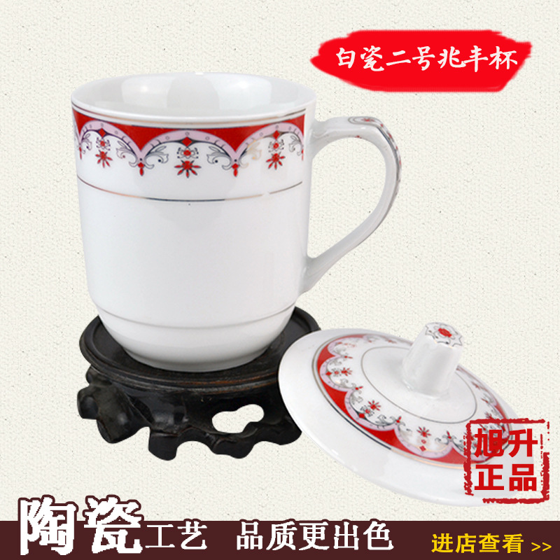 景德镇厂家直销套瓷杯办公杯套装水杯批发连把保温茶杯可定制logo