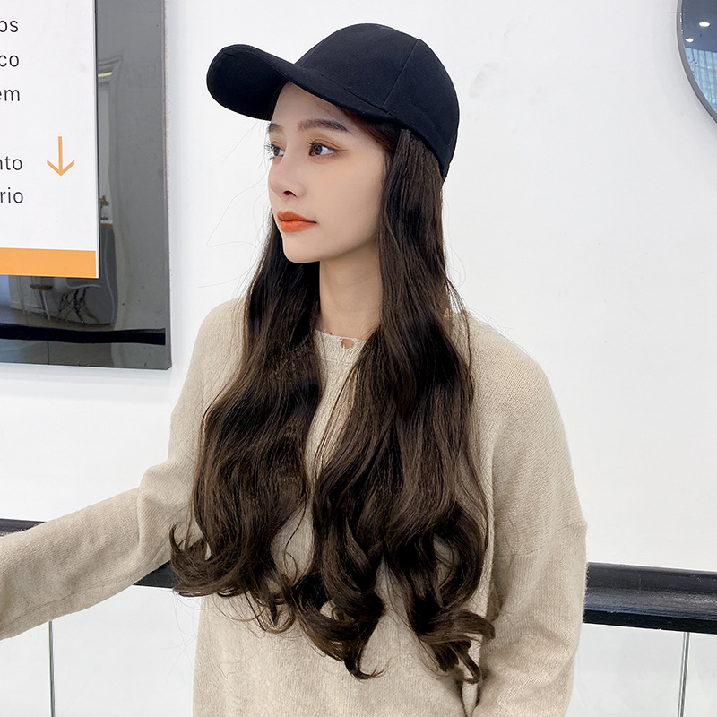 包邮 网红假发帽秋冬女士长卷发一体帽 韩版休闲鸭舌帽现货爆款