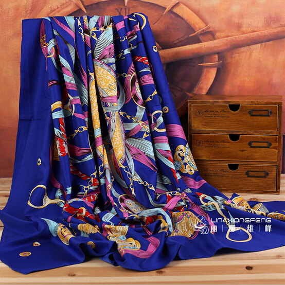 2016新款欧美风腰果花印花仿真丝缎面丝巾