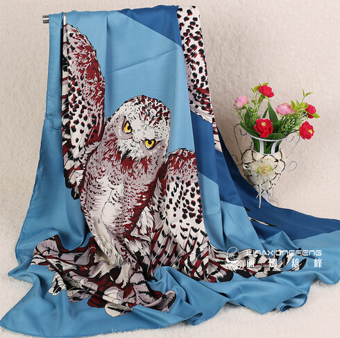 新款大牌猫头鹰印花真丝丝巾 女方巾