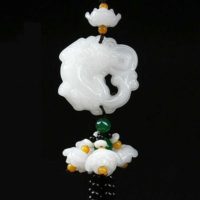 白玉莲花玉石汽车挂件车内饰品莲花挂饰出入平安貔貅挂件白玉挂件