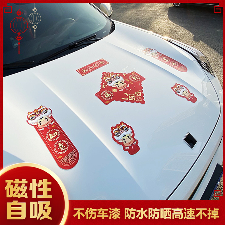 汽车对联新年自吸免胶粘汽车磁性对联汽车春联磁吸车对联磁力车贴