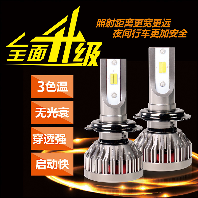 K1三色温智能汽车LED大灯 1860高亮聚光led前照灯 H4 H7 工厂直销