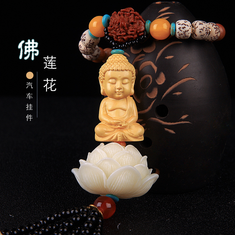 厂家批发车载精品挂饰手工制作莲花串珠平安车内吊饰创意汽车挂件