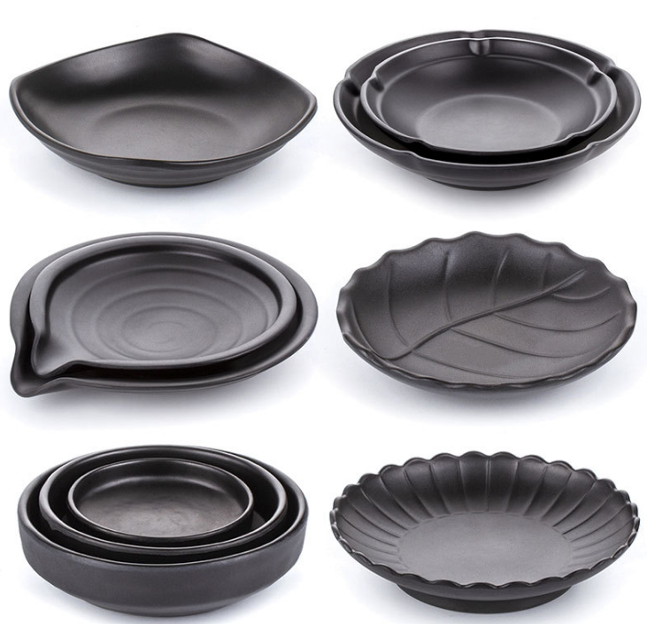 密胺餐具黑色不规则圆盘树叶盘创意碟干果盘系列