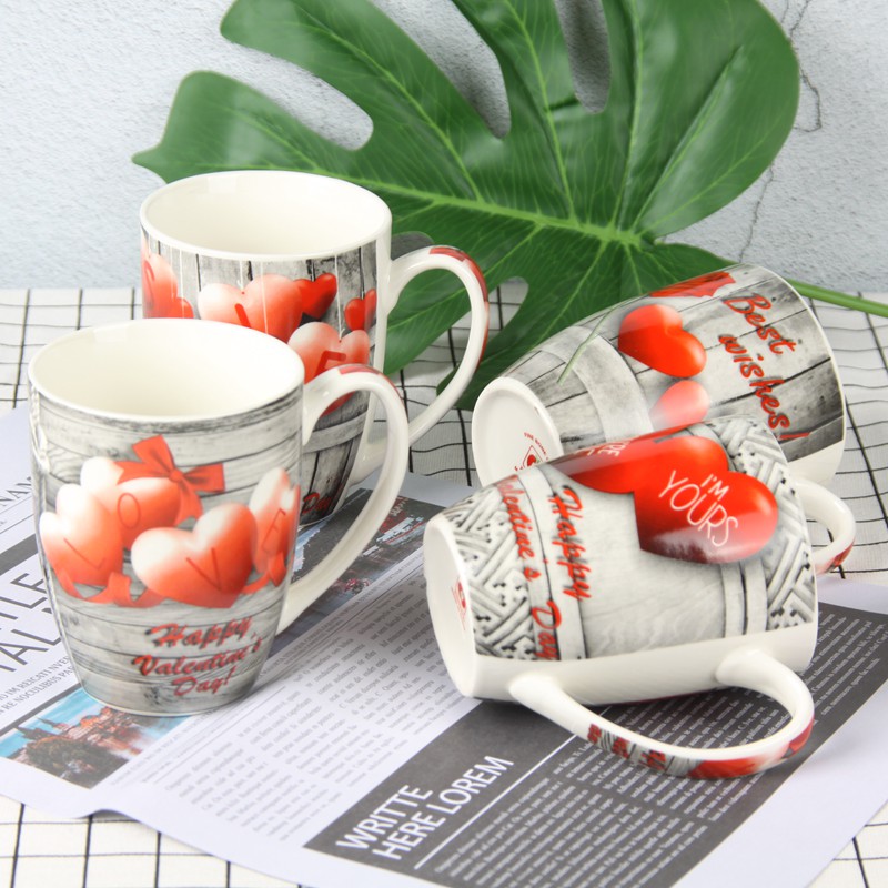 6547爱心情侣杯创意个性潮流新款时尚水杯陶瓷马克杯情人节鼓型杯