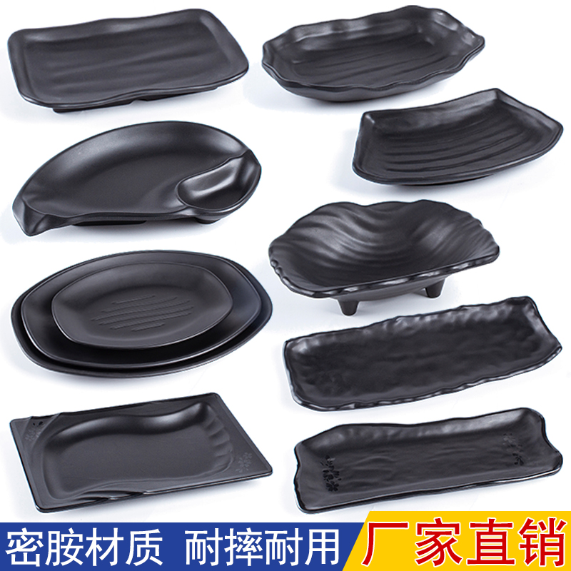长方形黑色磨砂密胺盘子餐具厂家直销现货批发