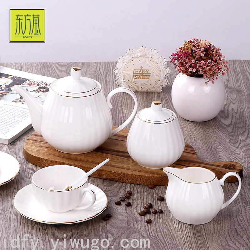 外贸陶瓷水具咖啡具骨瓷杯碟英式下午茶包金杯碟套装礼品15件套