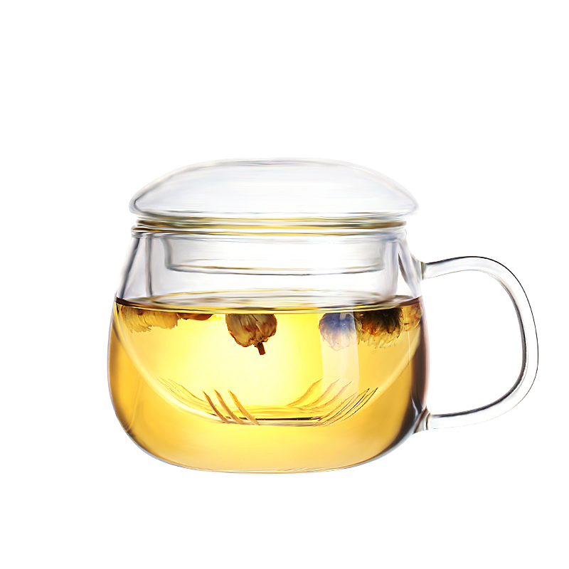 博绿雅过滤花茶杯泡茶茶壶耐热透明玻璃杯水杯三件杯