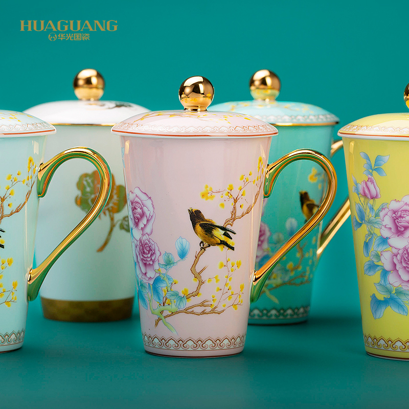 华光国瓷 陶瓷水杯 盖杯 马克杯 大容量 骨瓷杯子 英直杯 女神杯