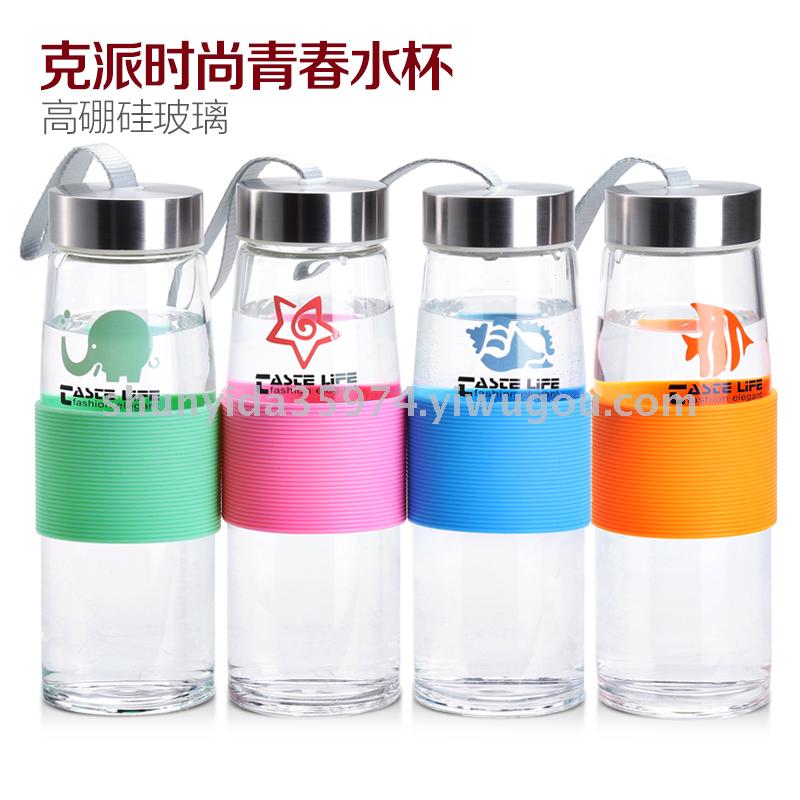 大号原创运动水杯玻璃杯 创意硅胶套保温杯 双层耐热便携学生水杯