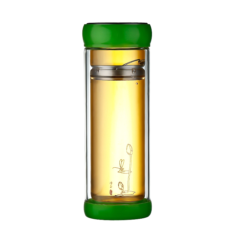 绿色盖高硼硅玻璃杯 双层隔热保温杯水杯300ML
