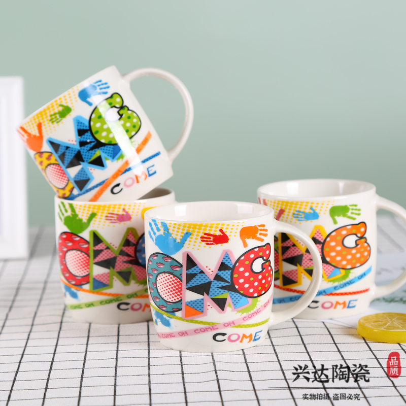 厂家现货直销 多彩流行印花图案装饰办公桌水杯 陶瓷马克杯咖啡杯