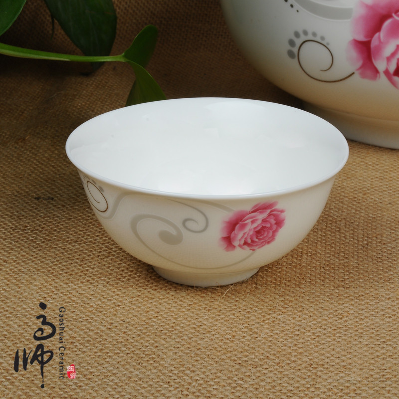 陶瓷釉上彩骨瓷花卉玫瑰花饭碗反口碗汤碗景德镇陶瓷餐具批发